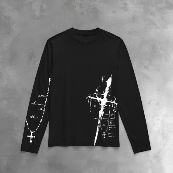 Sword to czarny longsleeve ozdobiony wyrazistą, białą grafiką utrzymaną w estetyce dark art.