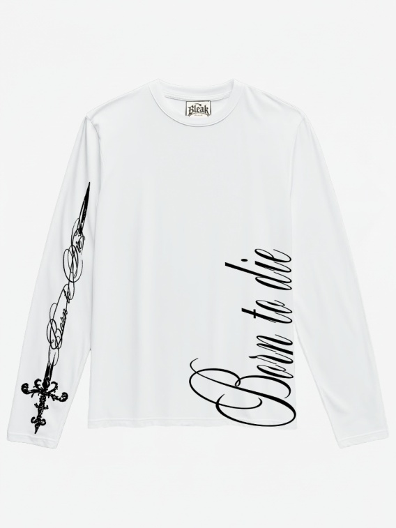 Sword to biały longsleeve ozdobiony wyrazistą, czarną grafiką utrzymaną w estetyce dark art.