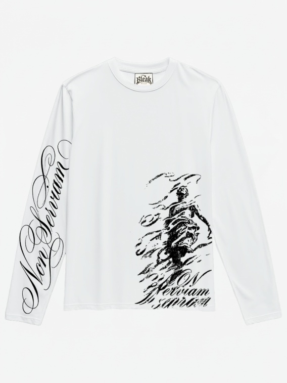 Sword to biały longsleeve ozdobiony wyrazistą, czarną grafiką utrzymaną w estetyce dark art.