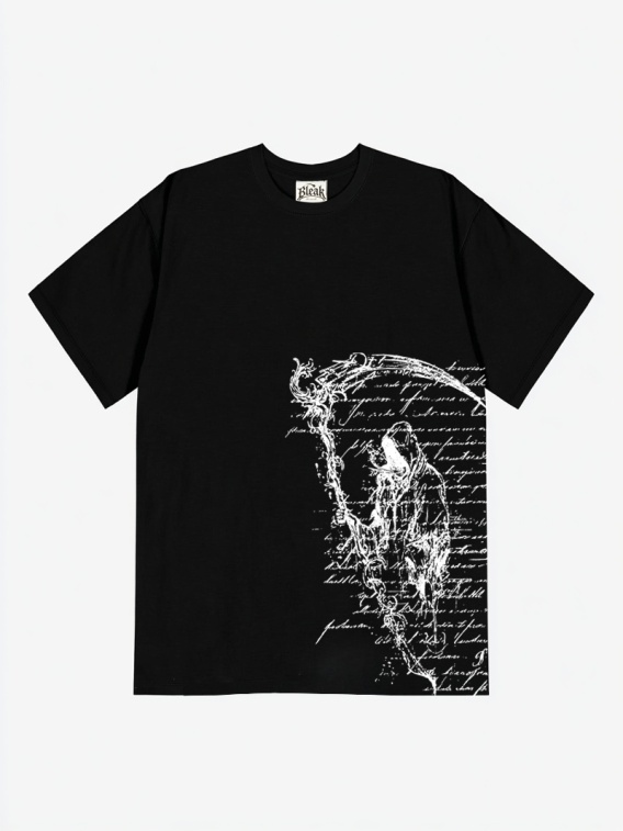 Cathedral to czarna koszulka ozdobiona białym, misternym nadrukiem przedstawiającym gotycką, fantazyjną katedrę w stylu dark art.